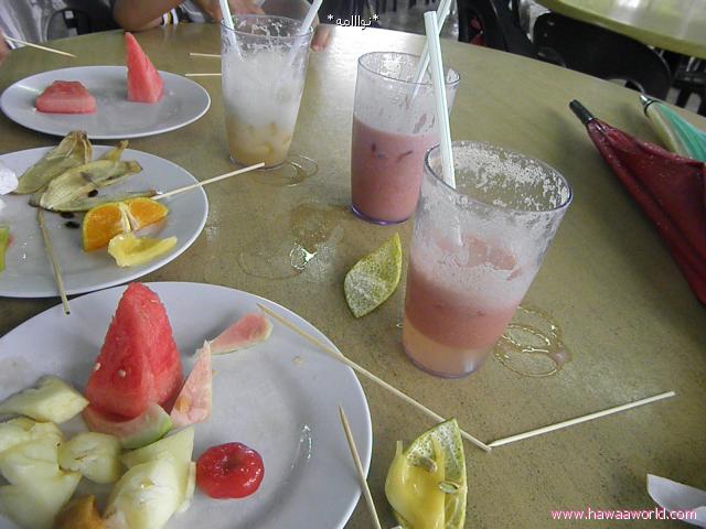 أول ما طلعنا للحديقه قدموا لنا فاكهه وعصيرات فرش