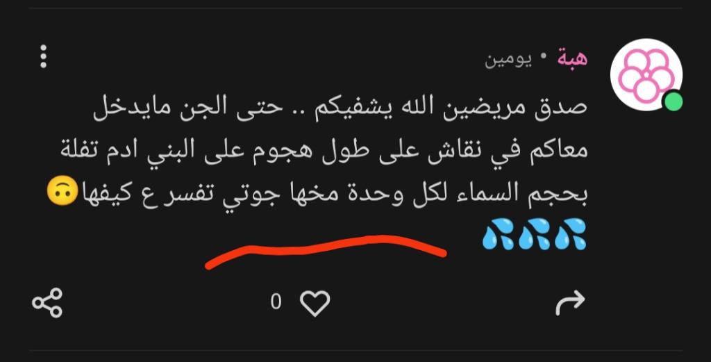 غلط الواحد يناقش همج استغفر الله بس وكل وحدة تعير وتعيب تشوف حياتها الخياس حتى حياة الاموات يمكن احسن منها ...يشخصنو الكلام ع كيفهم همج متعودين ع السفالة طول عمرهم همج وتربية بدائيين 💦💦