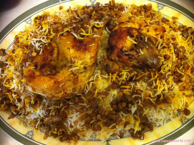 طبعا على ماء الدجاج وضعت الرزبعد ان صفيته من البهارات و البصل وزدت الملح قليل للرز وكبست الرز ولما نشف الرز