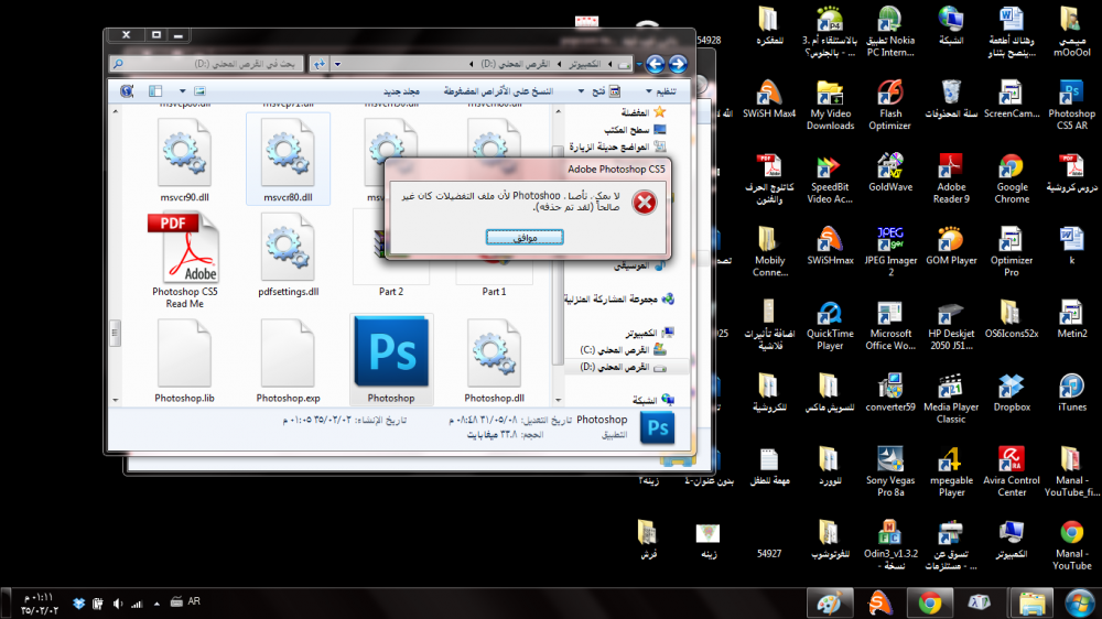 الحين حاولي نظفي ال سي وحملي واحد جديد ويرجع لك كل الملفات والصور الي حفظتيهم بالفوتوشوب الاول