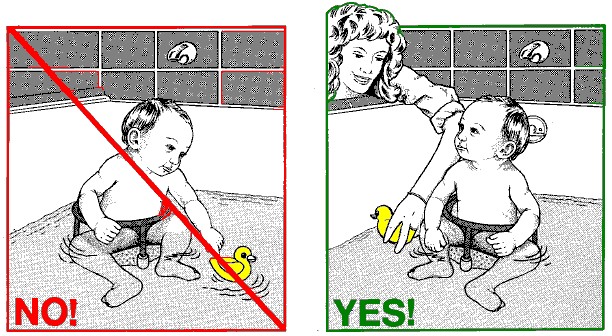 1-اني ما اترك الطفل لحاله بالحمام وانشغل عنه لا تلفون اوطبخة او اي شي