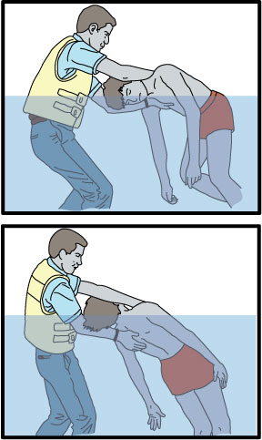 وهي طريقة الانقاذ في المسابح وهي ان ياتي المسعف من خلف الغريق وليس من امامه حتى يمنع تعلق الغريق بالمسعف وهذا قد يؤدي الى غرق المسعف ايضا