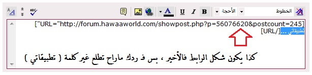 ثانياً : ( شرح وضع كلمة بدل الرابط في مشاركتك )