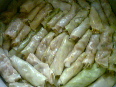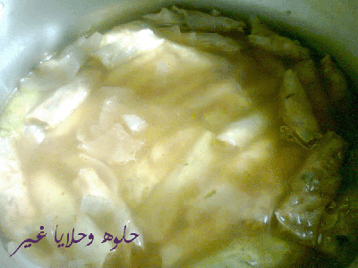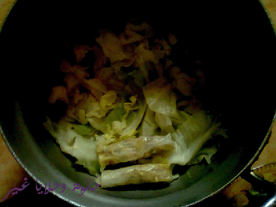 نرص الملفوف فيقاع القدر او ممكن شرايح بصل او بطاطس