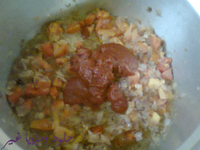 ونحط المرقه عليه وهي عباره عن معجون طماطم +ماجي +مرقه دجاج ونحركهم على النا ونصبه على الحشي)