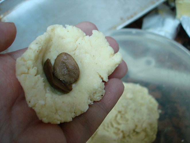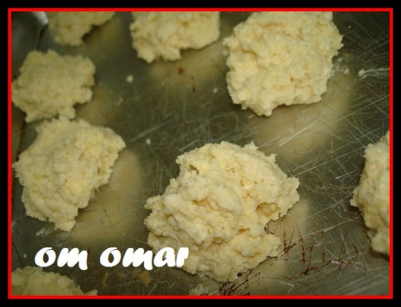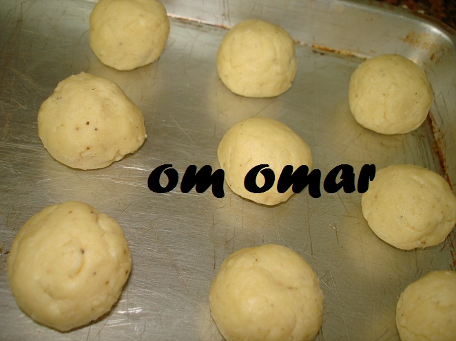 ونكور المقدار ونرصه في صاج الخبز