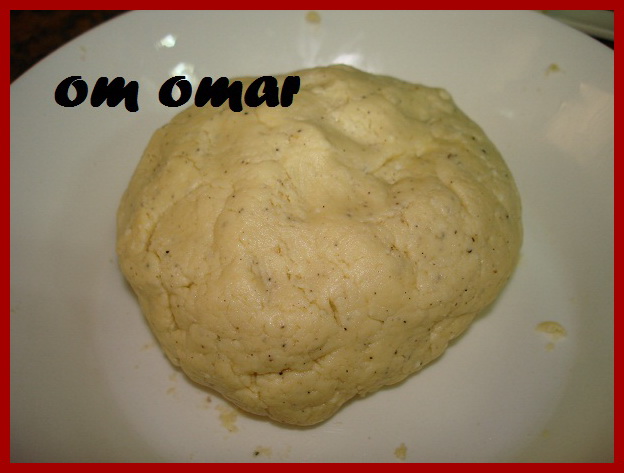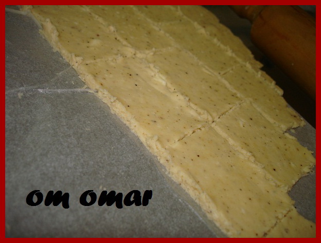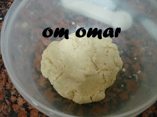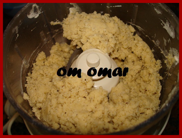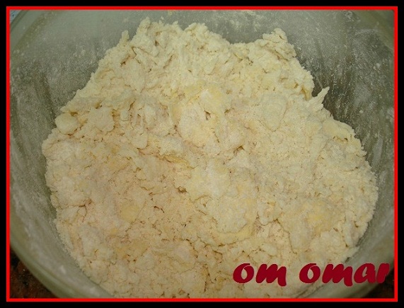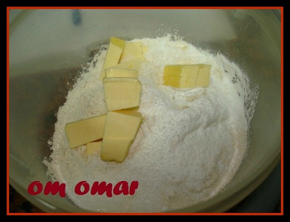 ثم نفرك الدقيق مع الزبدة والجبنة المبشورة بس انبه تاااااااني منبالغش في العجن