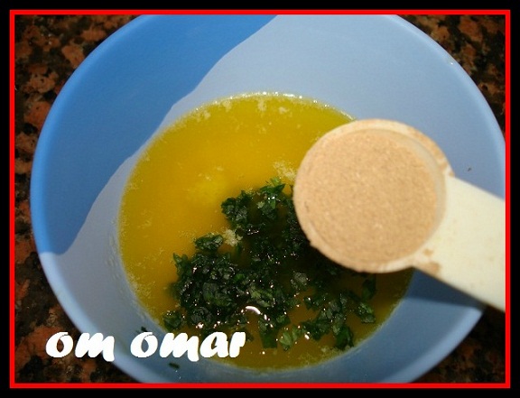 3ملعقه كبيره زبده مذابه على نار خفيفه-1ملعقه صغيره توم مفروم(أو بودرة توم)-1ملعقه صغيره بقدونس مفروم