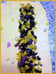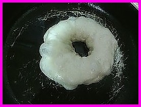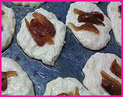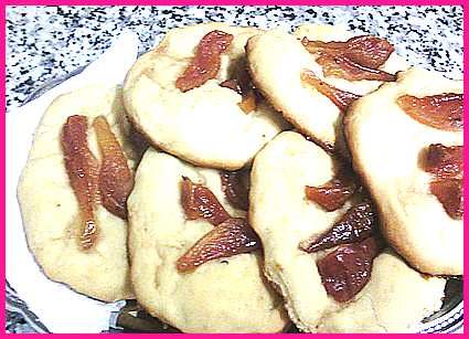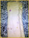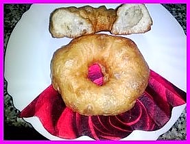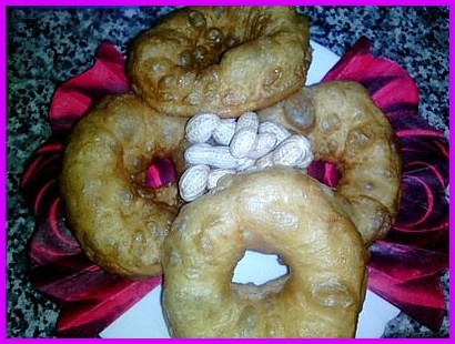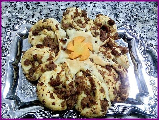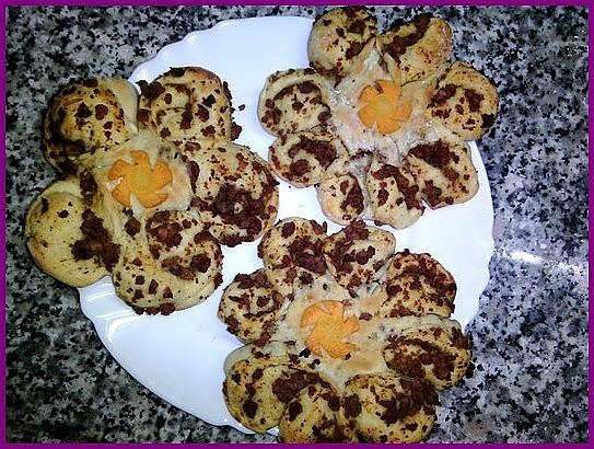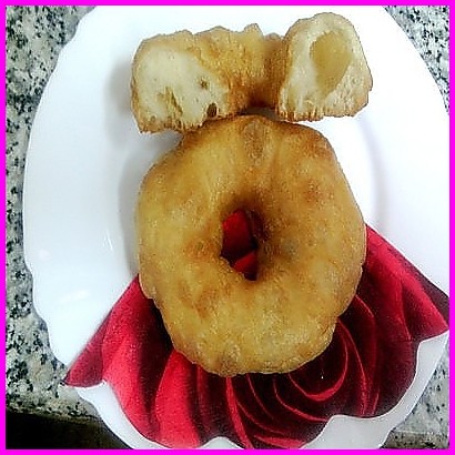 للعجينة: دقيق أبيض مع بياض بيض و كمية من خميرة الحلى و ملعقة كبيرة خل أبيض و قليلا سكر