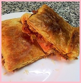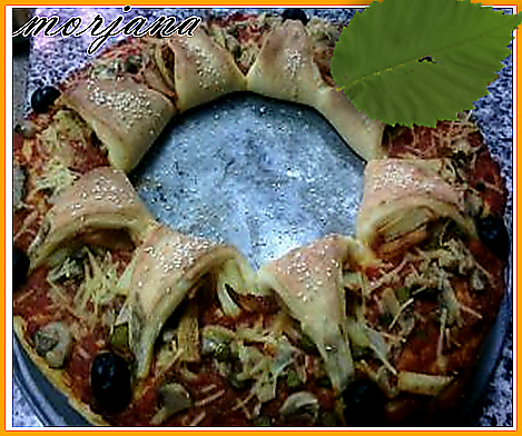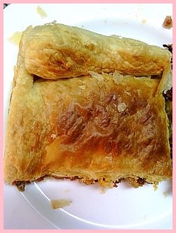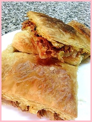 للعجينة °°500 فرينة نضيف لها ملعقتين خل أبيضمع ذرة ملح و علبتين جبن طازج و نحرك جيدا ثم 200 غ زبدة طرية ونفرك الكل و نجمع باللبن و نبقي عليها نوعا ما صلبةترتاح هذه الأخيرة خمس دقائق ثم نبسطها بالقالب المختار و ترتاح مرة أخرىثم تخبز بفرن ساخن مسبقا و بعد ذلك نخرجها و نملأها بما يلي و الحشو إختياري لك °°لحم مفروم-كزبرة جافة-ملح-بقدونس-ملعقة طماطم مصبرة-نصف حبة طماطم مبشورة-التوابل المعتادة و معها فلفل أبيض -حبة بصل صغيرة مفرومة و معها حبة ثوم مبشورة و نضع الكل على النار حتى تجهز ثم نخبزها بالفرن حتى تستوي تماما