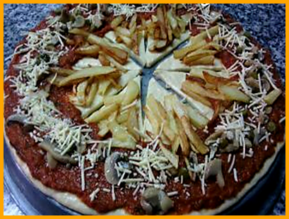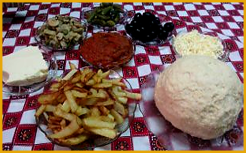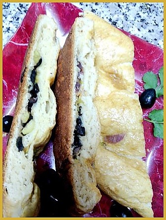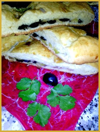 الحشو:طماطم حب و بصل -رند وتوابل و زعتر و زعيترة و ملح تخبز و تبسط وتطهى على الصاج.