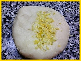 كل المكونات مع بعض و ترتاح نصف ساعة بعدها تقسم العجينة