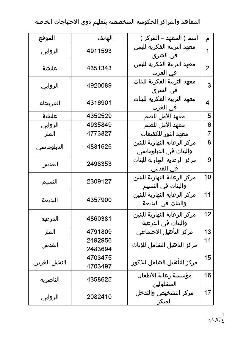 وهل يوجد مراكزللتوحد حكوميه