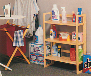 مواد وأدوات الغسيل ... والرفوف عملية جدا لزيادة مساحة الغرفة ... ويجب تثبيتها