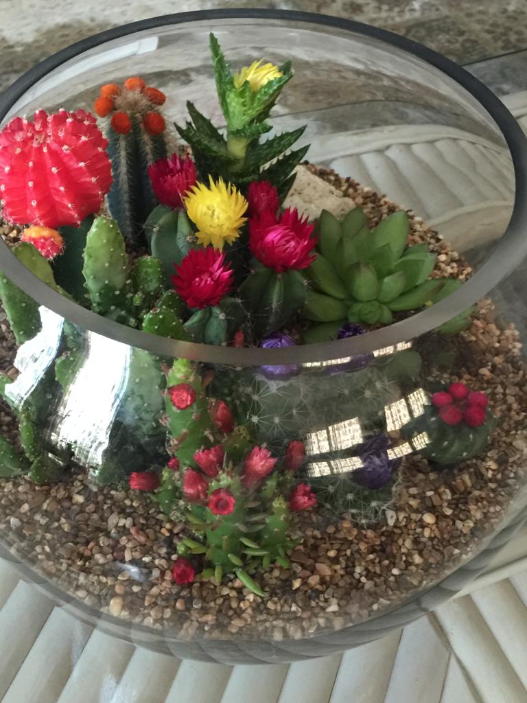 جاءتنا في زهرية كبيرة شفافة استعملت كأصيص شتى أنواع