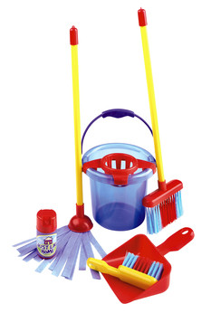 المكنسة والجاروف وفرشاة التمسيح والسطل