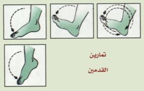 ب - بسط مقدم أصابع القدمين إلى الأعلى ثم شدها نحو الأسفل وتكرار ذلك عشر مرات لكل قدم.