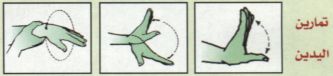 أ- توجيه راحة الكف إلى الأسفل ومد الابهام نحو الرسغ واستنشاق الهواء ونفثه خلال ذلك وتكرار التمرين مع