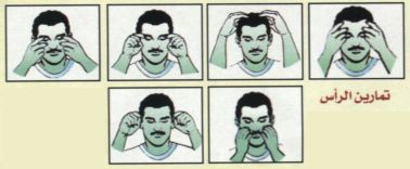 ب - رفع الكتفين إلى الأعلى نحو الأذنين ونفث الهواء خلال ذلك وإنزالهما إلى الأسفل وتكرار ذلك خمس مرات.