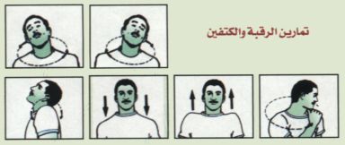 أ - تدوير الرقبة ببطء خمس مرات في كل اتجاه وتجنب شدها بقوة.