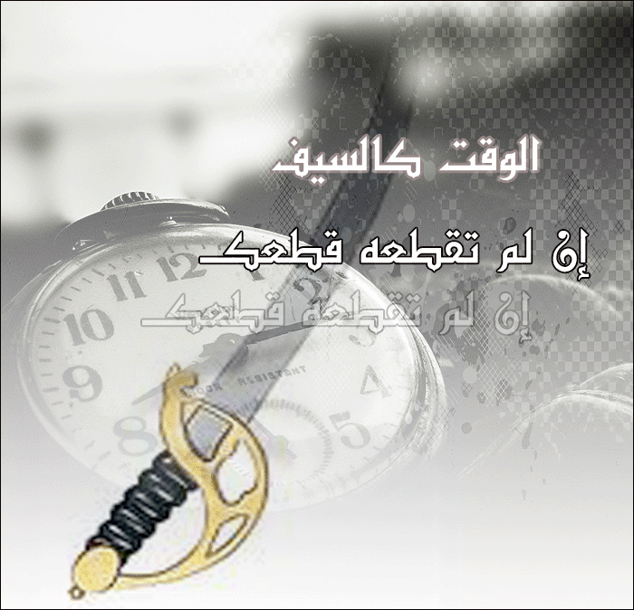 انا جبت صورة سساعه وصورة سسيف ودمجتها مع بعض طلعت كويسسه بس احسها ناقصه مرره ابغاها عن الوقت كالسيف ان لم تقطعه قطعكك