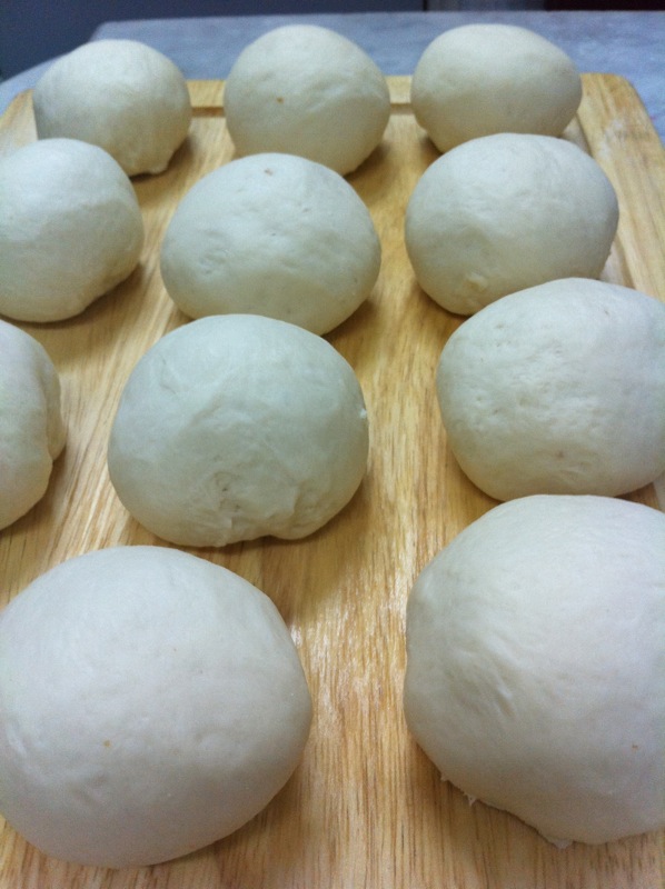 ثم نضيف الدقيق واحدة واحدة بحيث تكون العجينة لينة وطرية