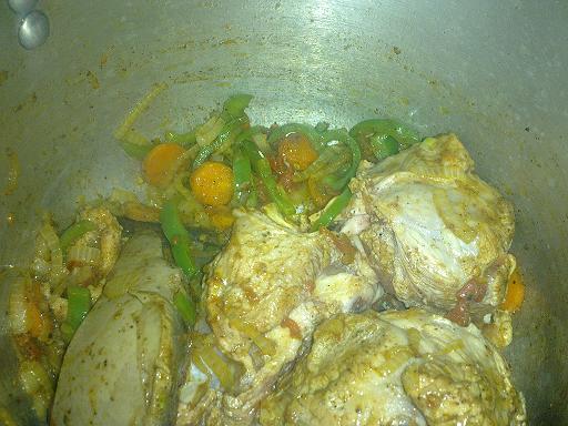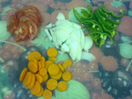 بصله متوسطه مقطعه شرائح -نصف حبه فلفل رومي مقطع -طماطم مقطعه شرائح -عود قرفه