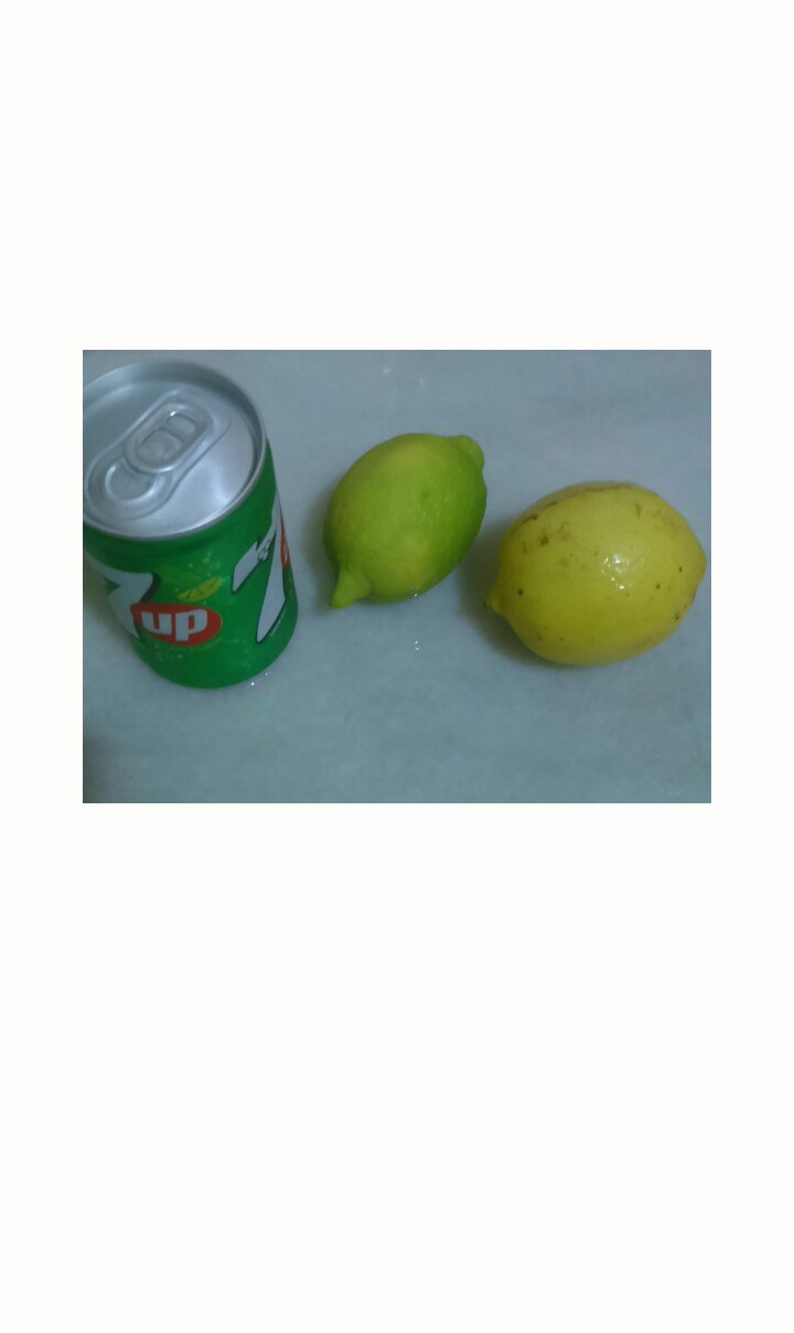 بعد ذلك نضيف عصير حبتين ليمون وعلبه سفن اب صغيرة حجمها حوالي كوب ونخلط بالملعقه فقط وتقدم بالهناء