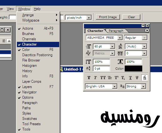 بس فجآه مدري وش صار ماصار يكتب عربي بالفوتوشوب ولاالمفكره