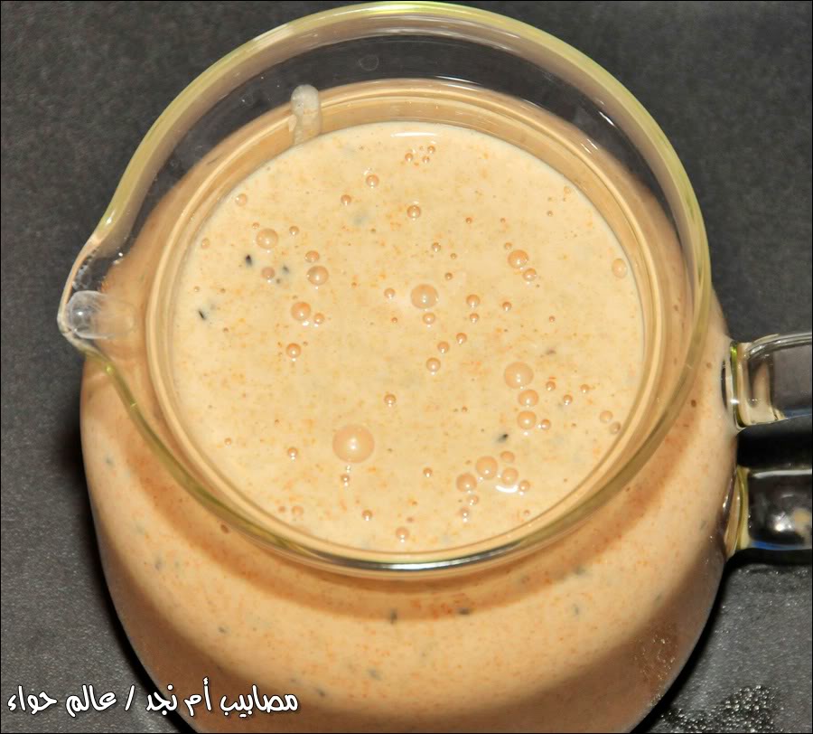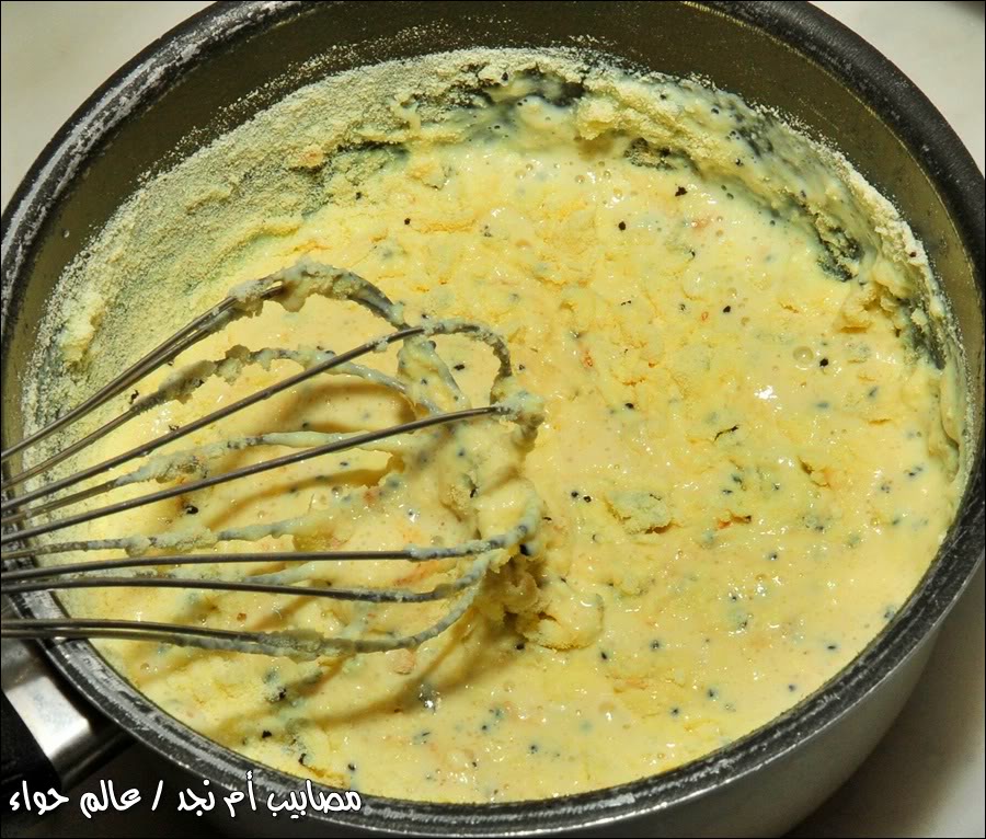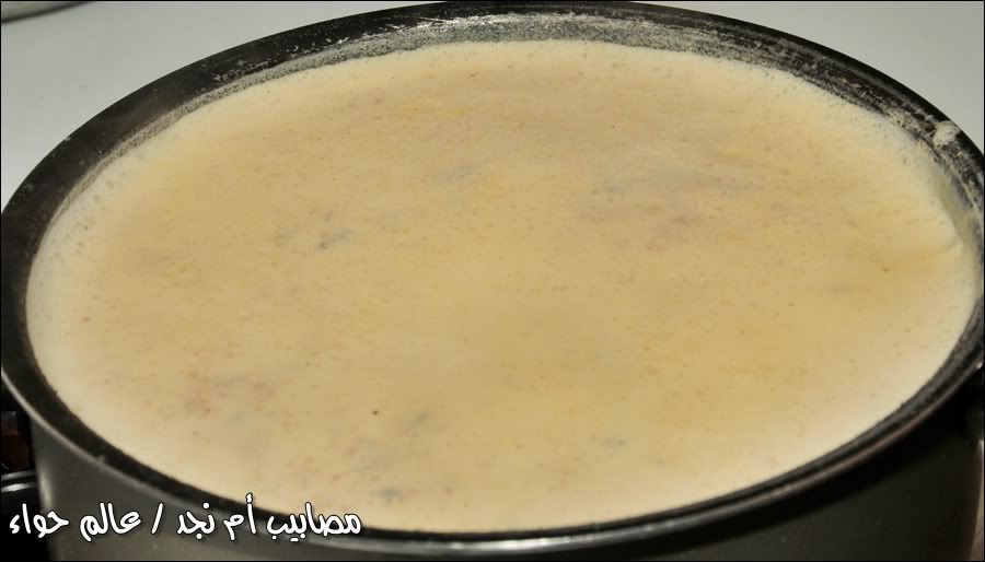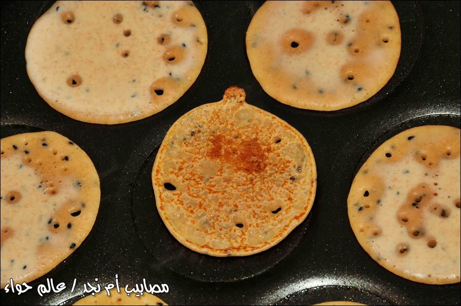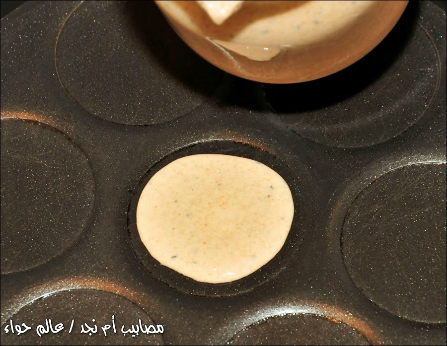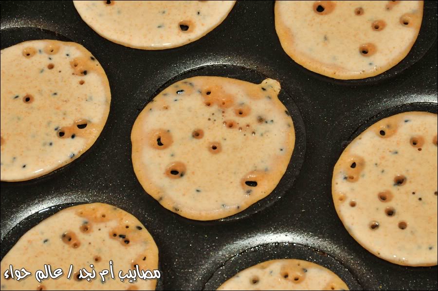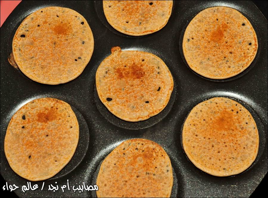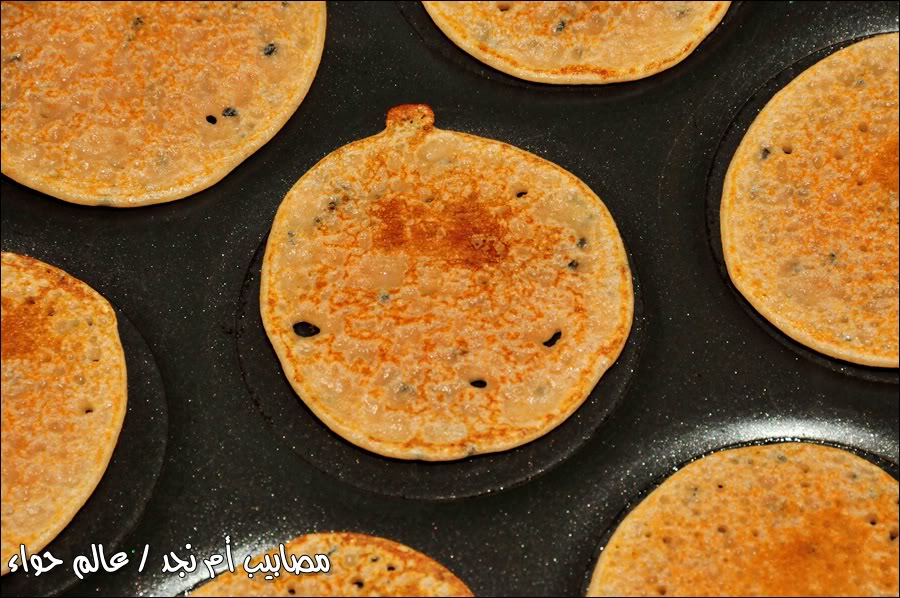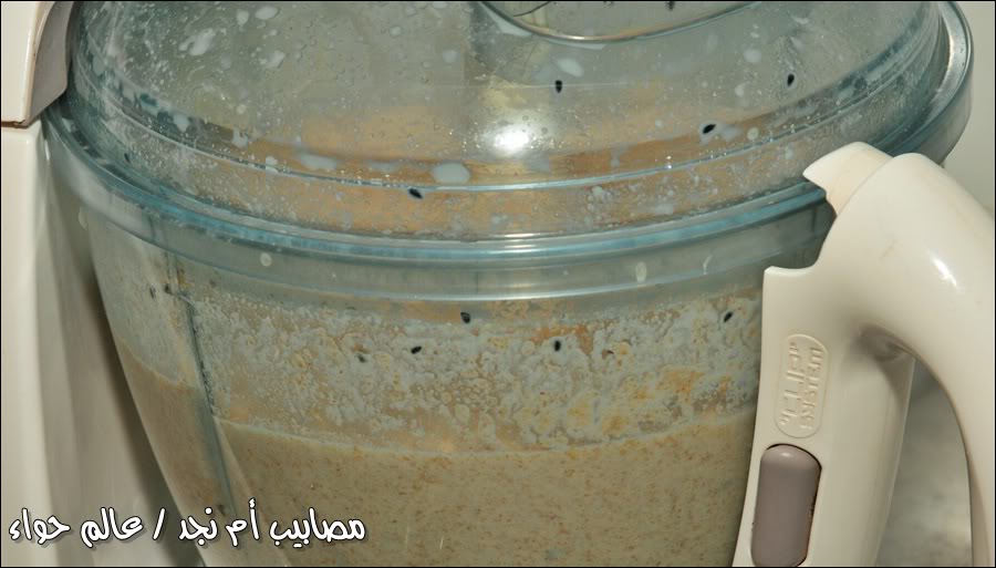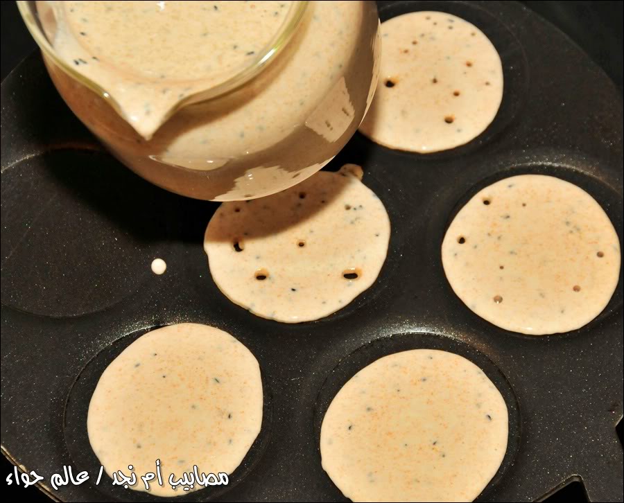 هذا الخليط جاهز للصب على الصاج لكن نتركه لمدة ساعة يلين ولا يسبب إنتفاخات أو سوء هظم بعد اكله ( وهي طريقة مجربة )