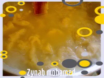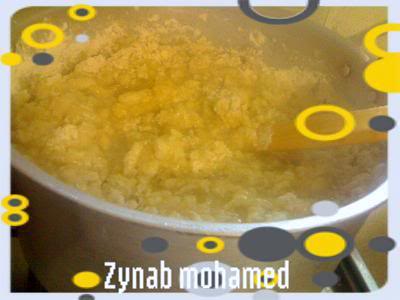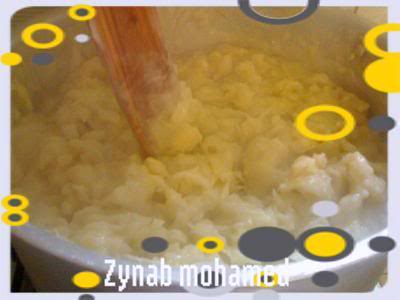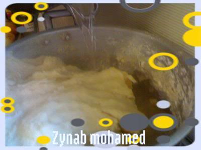 توضع الطنجرة على نار هادئة و يسكب على العجينة الماء الساخن