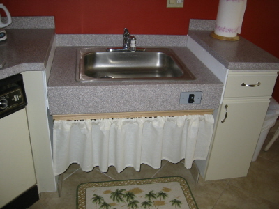 المجلى غطيه بستارة وحطي رفوف بلاستك تحت المجلى وتكون متخبيه خلف الستارة..