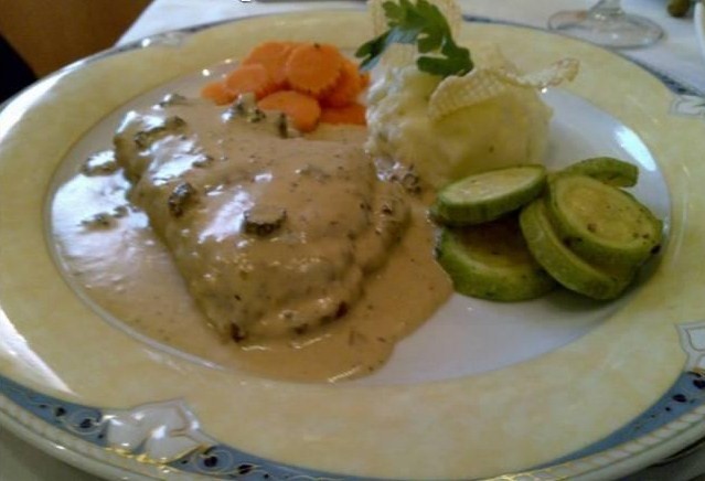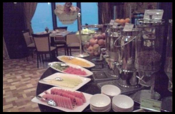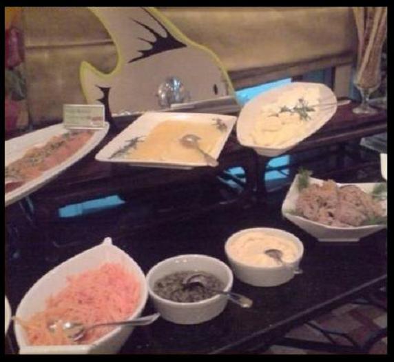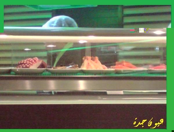 أطباق المطعم أوروبية بحتة .. لكن ما يميز فعلا هذا المطعم هو أطباق الحلويات الأنيقة المضاءة ..