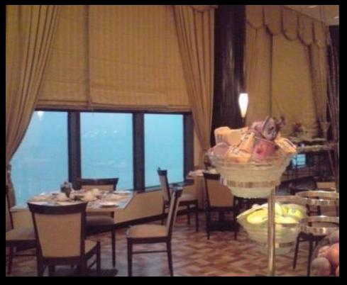 المطعم من فئة مطاعم الـ 5 نجوم .. والقاعة العلوية من المطعم في الهواء الطلق وتطل على