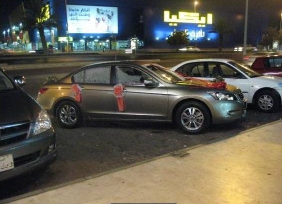 سيارة عرسان أمام المطعم