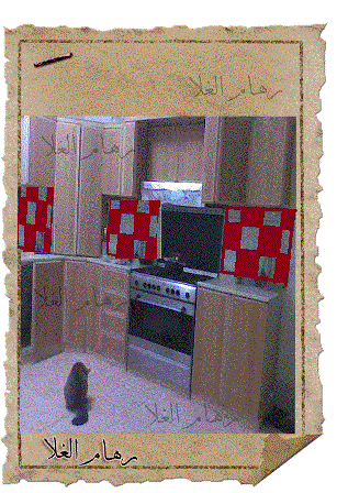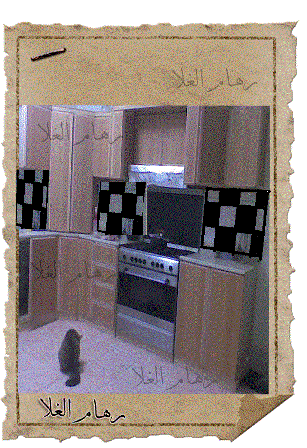 اللمهم المطبخ مع الجدار جاي فاتح مره باهت بس خذي جلاد لونين وجلدي زي الكاروهات بني وزيتي