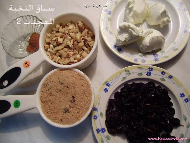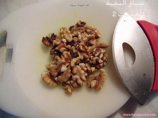 نضيف الجوز ونحرك وتكون الحشوة جاهزة.