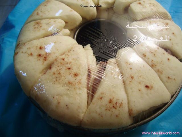 نضع الجدايل في صينية مدهونة ونغلفها ونترك الجدايل تختمر ويتضاعف حجمها ---