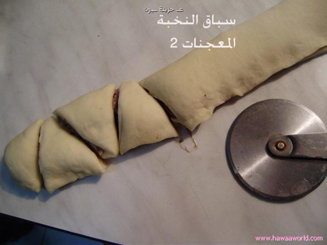 بواسطة سكين أو قطاعة البيتزا نقطع المستطيل إلى مثلثات صغيرة ( عرض قاعدة المثلث 2 سم تقريباً )