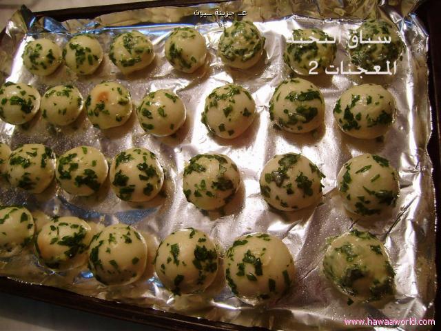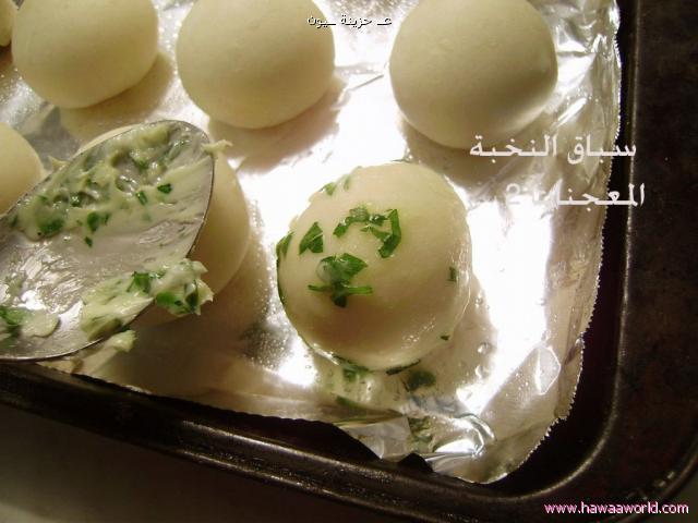 كرات من العجين محشوة بالجبن الشيدر ومغلفة من الخارج بطبقة من الزبد والثوم والبقدونس