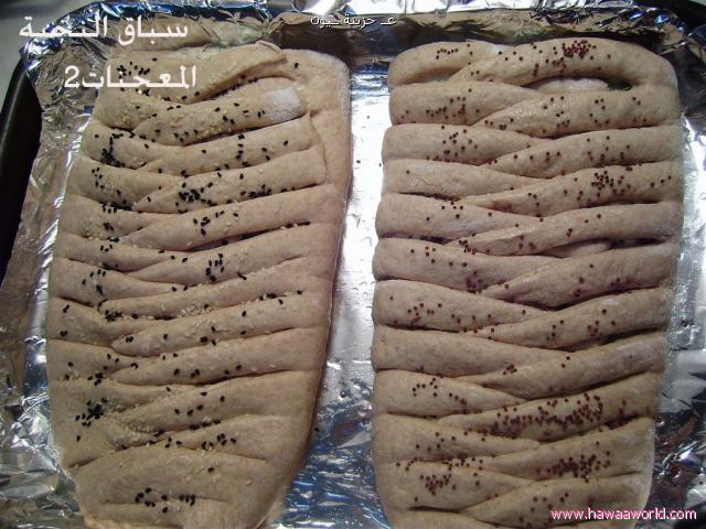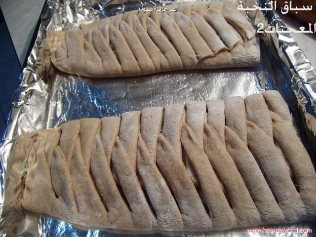 بعد إختمار الجديلتين نخبزها في الفرن الساخن بحرارة ( 190 ْم) مدة 30 دقيقة حتى تتلون الجديلتين بلون بني جميل وتكون الفطائر مقرمشة.
