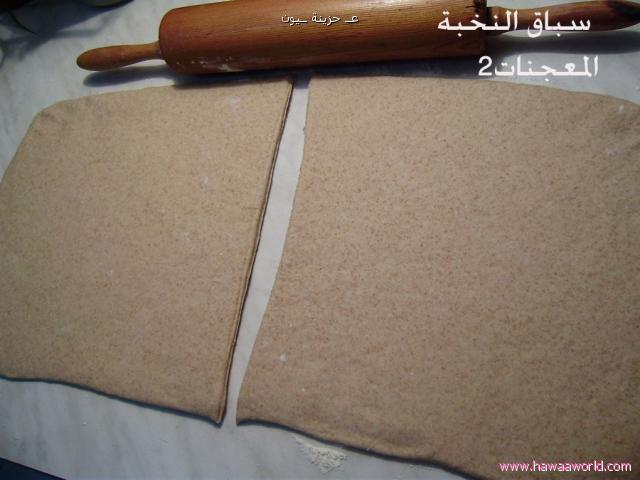 نكرر نفس الخطوات مع المستطيل الثاني من العجين ونضع الإثنان في صينية مدهونة.