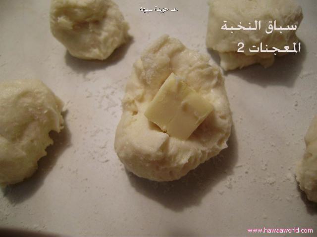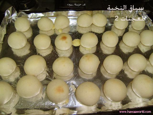 نغطيها ونتركها تختمر ويتضاعف حجمها ثم ندخلها الفرن ونخبزها حتى تنضج بدون ما تتلوّن ( حوالي 10 دقائق )