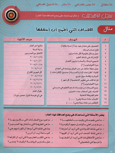 بعدها اهداف الشهر - اهداف الاسبوع - اهداف اليوم