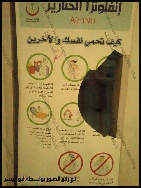 هذه صورة منتشرة من ألف في المبنى حيث أشاهد لوحة إرشادية ... لا أدري أكتبت بالحبر المخفي أم بماذا ؟
