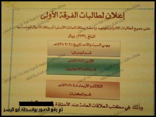 طالبة مستجدة تريد قاعة معينة ... مكتب إداري إلى أين تتجه ما دامت تلك الحالة المزرية للوحات كما تشاهدون !!