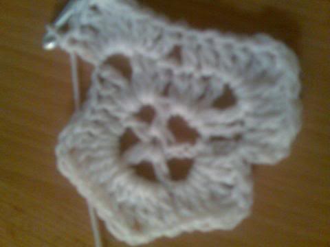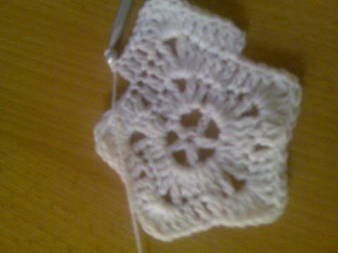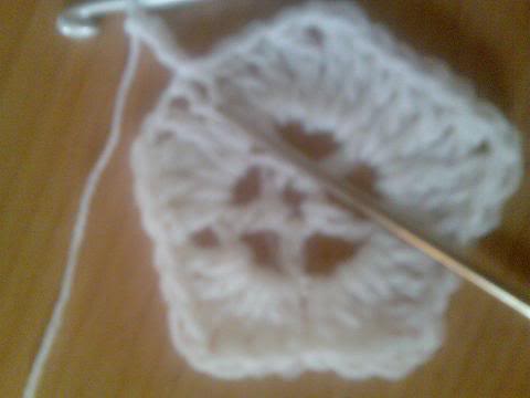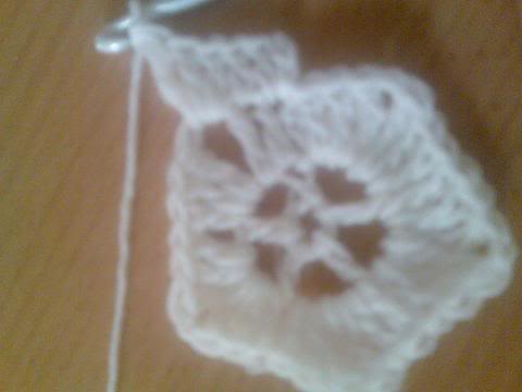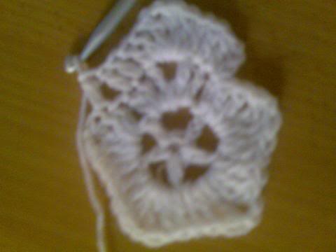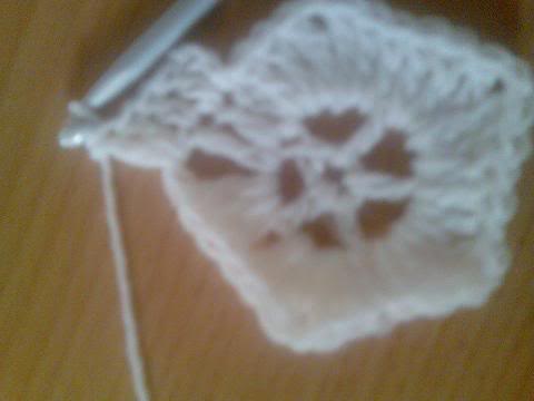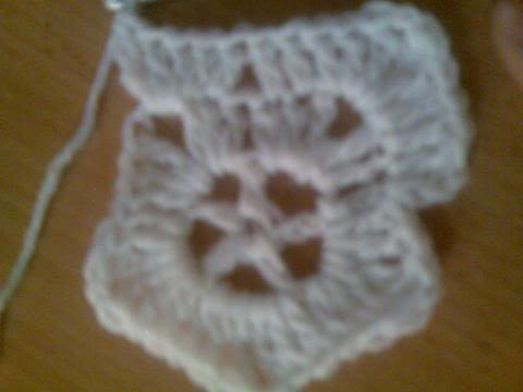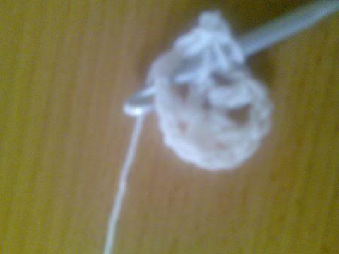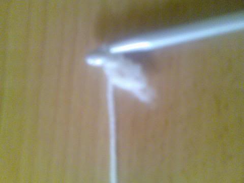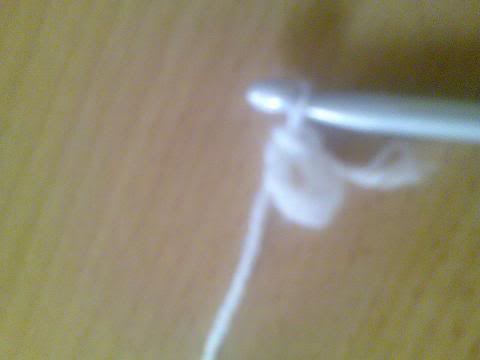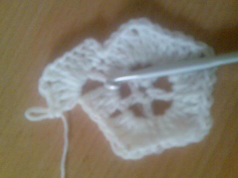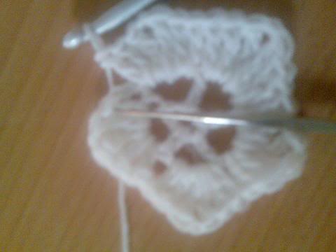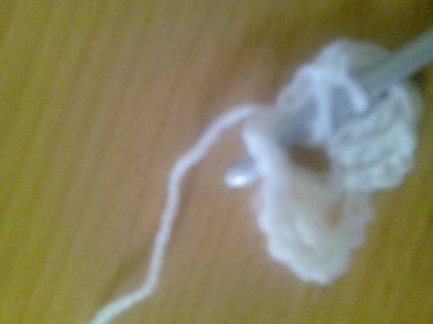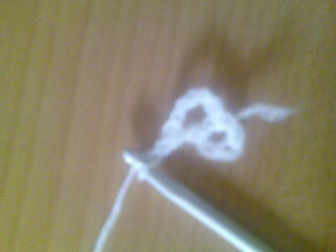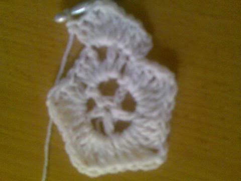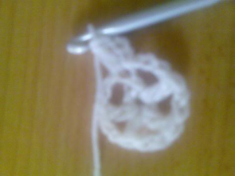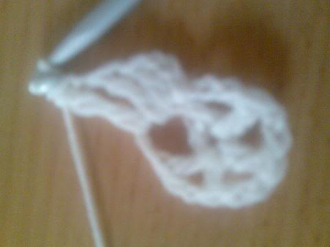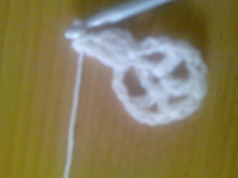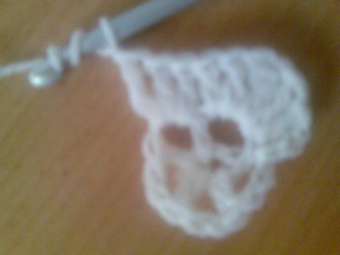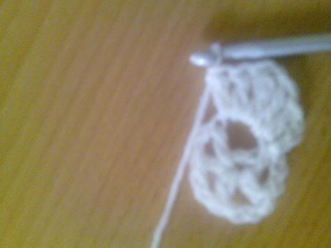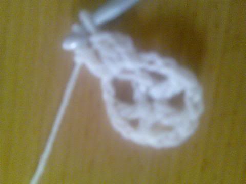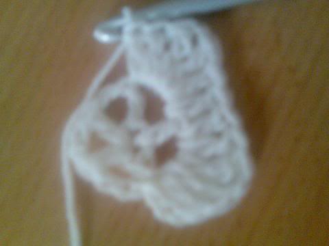 2-اشتغلي خمس سلاسل..ثم غرزة بريد عمودية ذات لفة واحدة..ثم سلسلتان هكذا