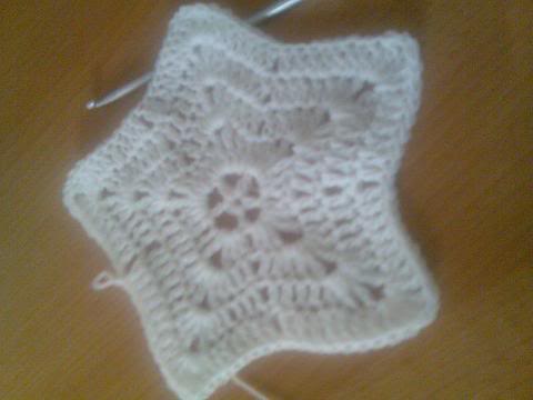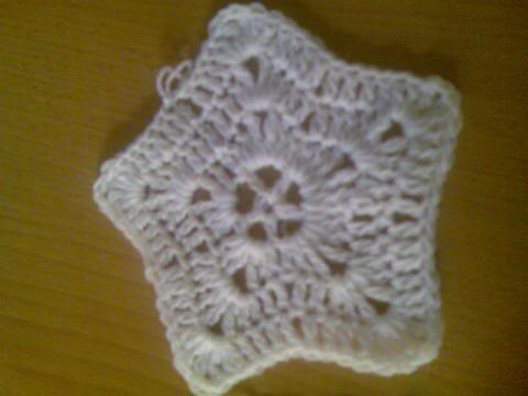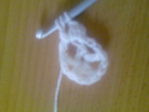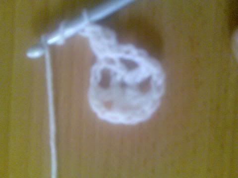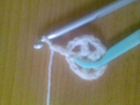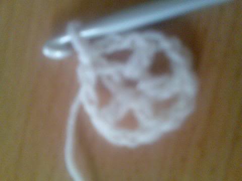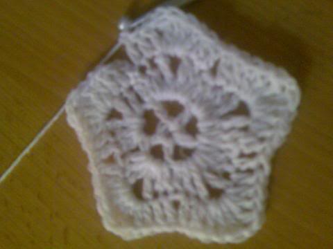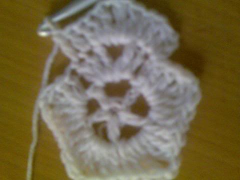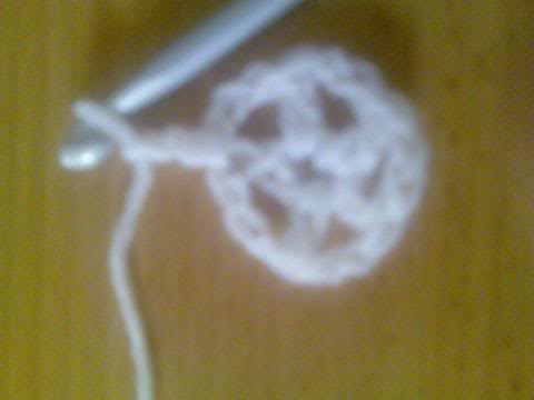 3- اكملي لتهاية الدائرة واغلقي الدائرة بمنزلقة(سلسة-غرزة طائرة) سيتكون لديكي خمس اعمدة وبينها خمس فراغات(مهم جدا) لانها ستكون حواف النجمة