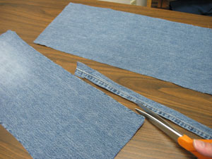 تقص الخياطة السفلية من أرجل البنطلون ...ويقص بمسافة متساوية ونزيل الخياطة من الوسط