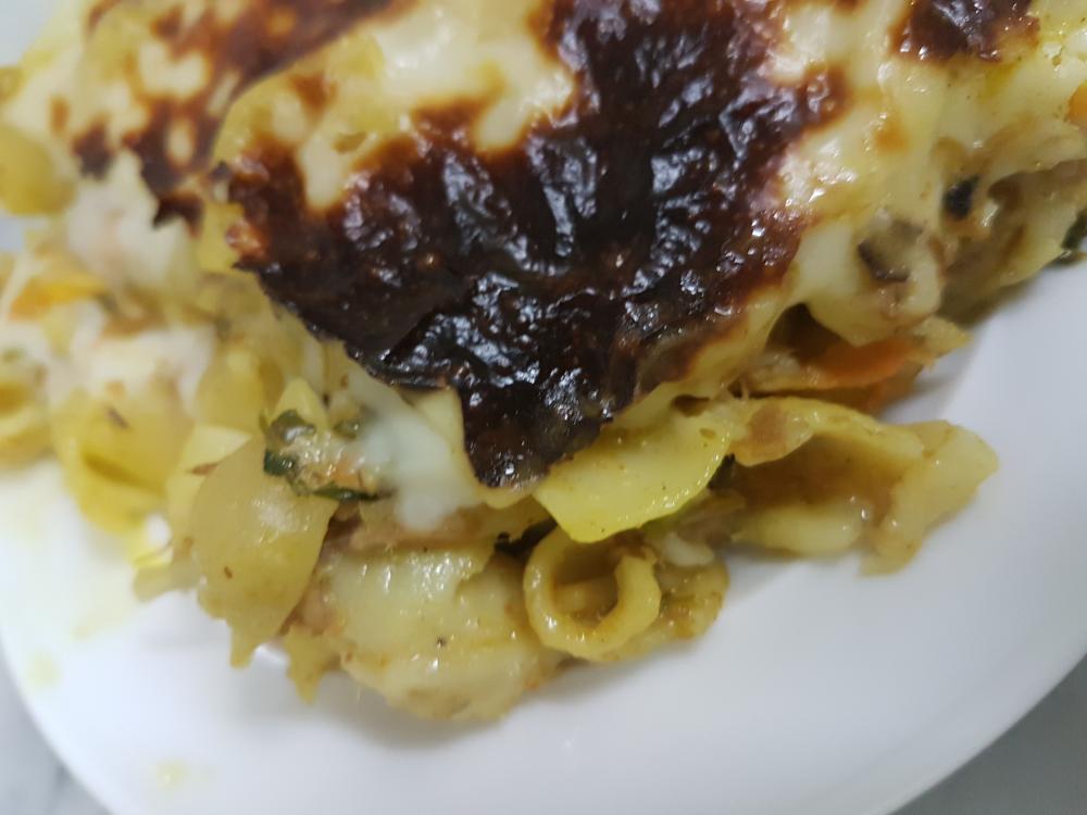 انا ماكان عندي جبن حطيت بدالها مايونيز وبس صبيتها فوق المكرونه ودخلتها الفرن ..